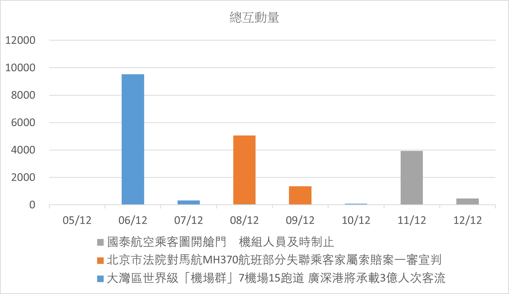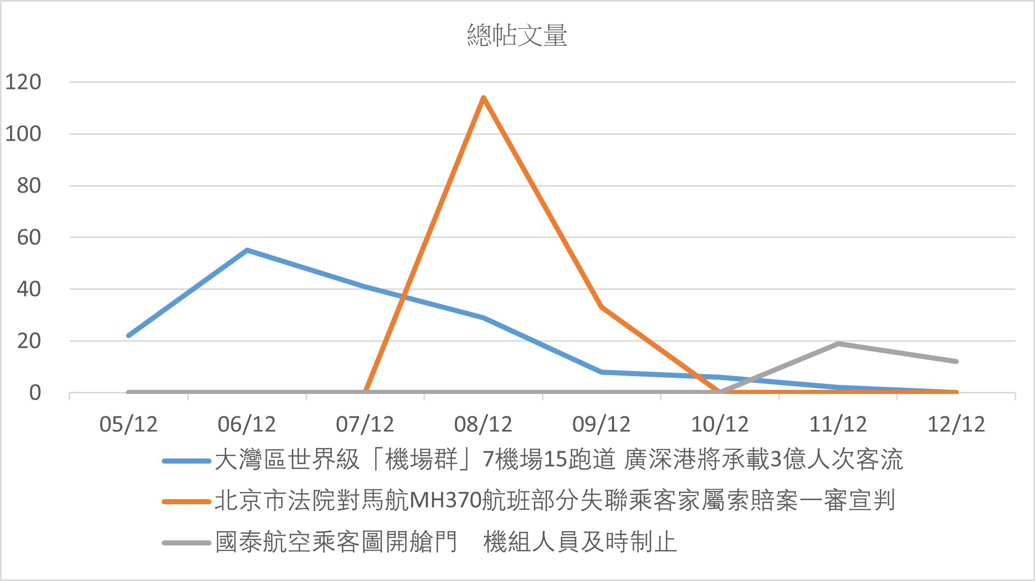 事件於5日開始錄得帖文量,並於6日引起網民及媒體的注意。其帖文量和互動量為整個星期的最高峰。帖文主要轉載於微博,為內地網民所報導和討論。有網民對大灣區世界級機場群的建設表示讚賞。