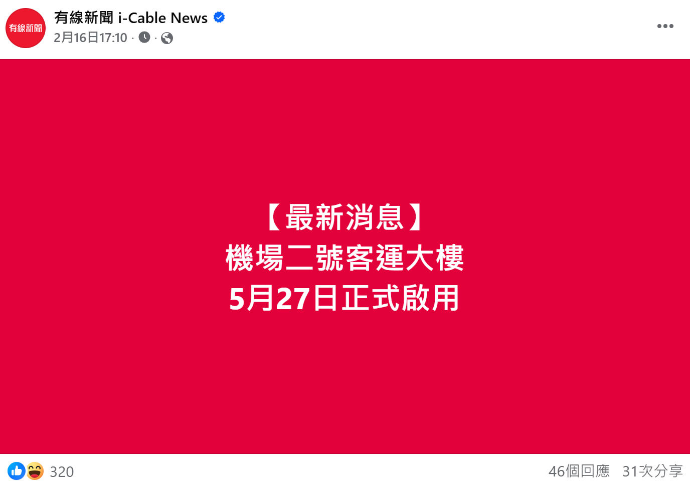 URL: Facebook-有線新聞 i-Cable News