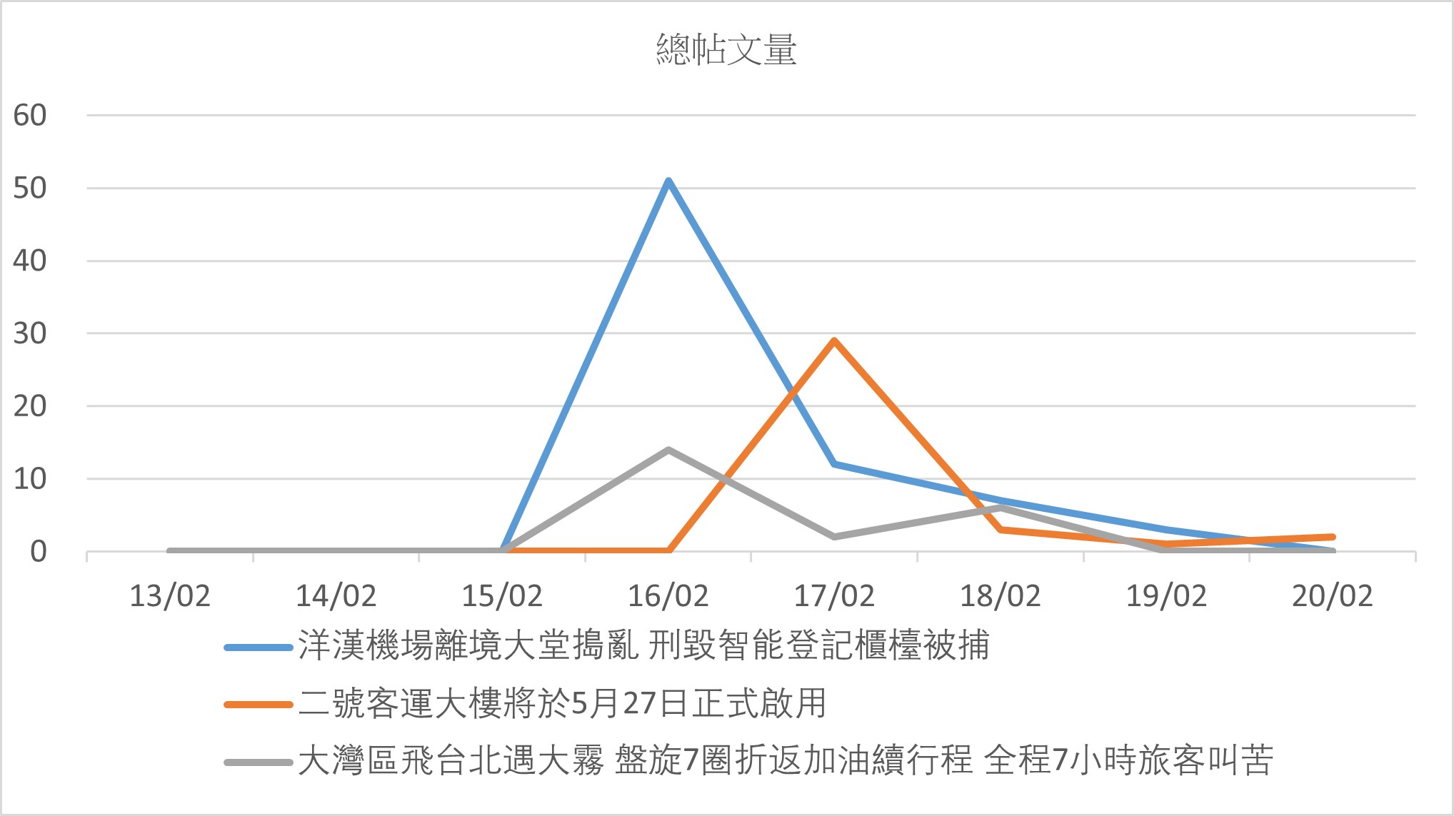 事件於16日開始錄得帖文量,並於當日引起網民及媒體的注意。帖文主要轉載於Facebook,為外國及香港媒體和網民所報導和討論。大部分網民理解天氣原因造成的航班折返。